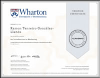 This course is part of the Wharton foundation series in the MOOC format. It is taught by three of Wh which is consistently ranked as the #1 marketing department in the world. Professors: David Bell, Peter Fader, Barbara E. Kahn. GRADE: 96.0%. Duration 9 weeks.